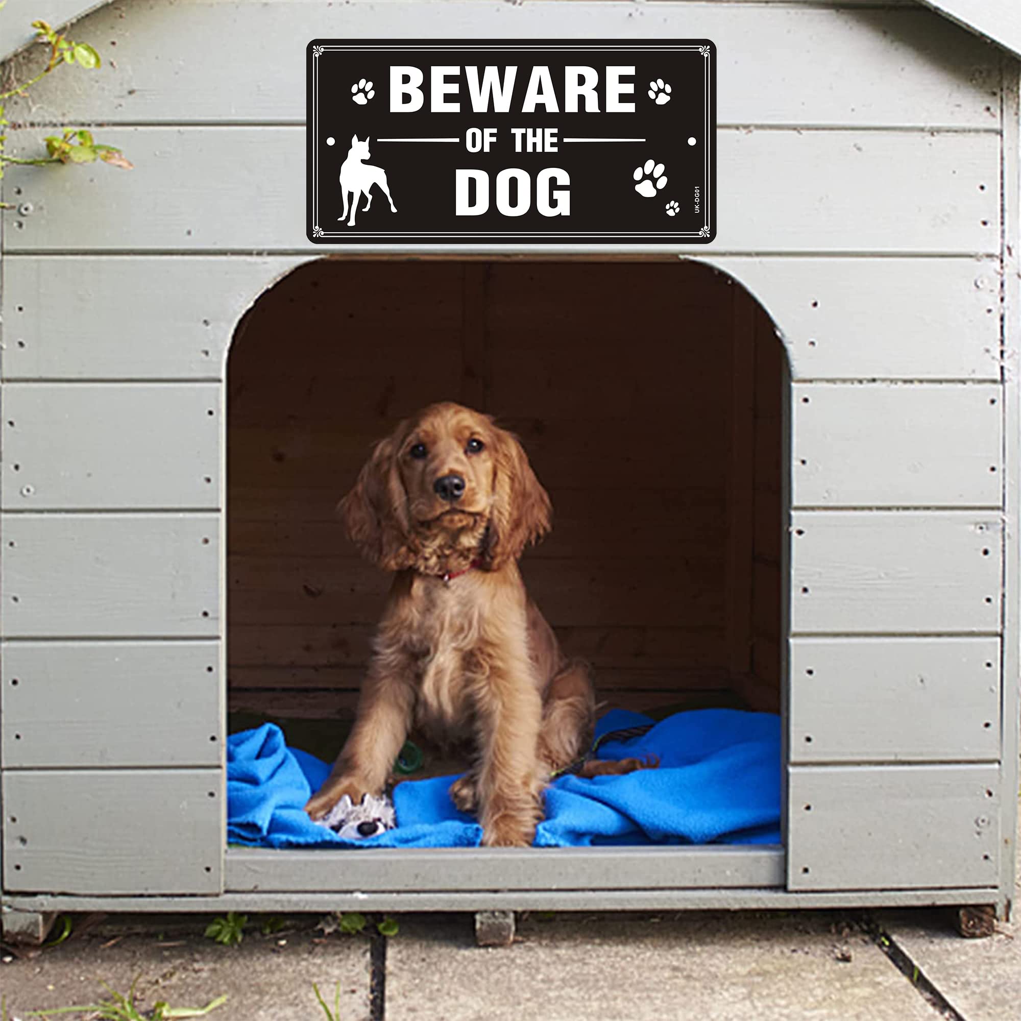 Wil je duidelijk maken dat er een stevige hond in huis is? Dit aluminium waarschuwingsbord met de tekst ‘Beschermd door Rottweiler’ doet precies dat. Het bord is 30 bij 20 cm groot, gemaakt van stevig aluminium en heeft een reflecterende oppervlakte, waardoor het ook in het donker goed zichtbaar is. Het is UV-beschermd, waterdicht en vervagingsbestendig, dus je kunt ‘m gerust buiten ophangen zonder dat de kleuren vervagen. Handig: er zitten 4 voorgeboorde gaten in, zodat je het eenvoudig kunt vastschroeven of spijkeren op bijvoorbeeld een hek, muur of paal. De boodschap is kort en krachtig, met een hoog contrast in kleur, zodat hij van veraf goed leesbaar is. Ideaal voor bij je voordeur, in de tuin of op je erf. Het ziet er strak uit en gaat jaren mee. Zo waarschuw je op een duidelijke manier bezoekers of ongenode gasten. Geen gedoe met kwetsbare bordjes – dit is stevig, praktisch en doet wat het moet doen.